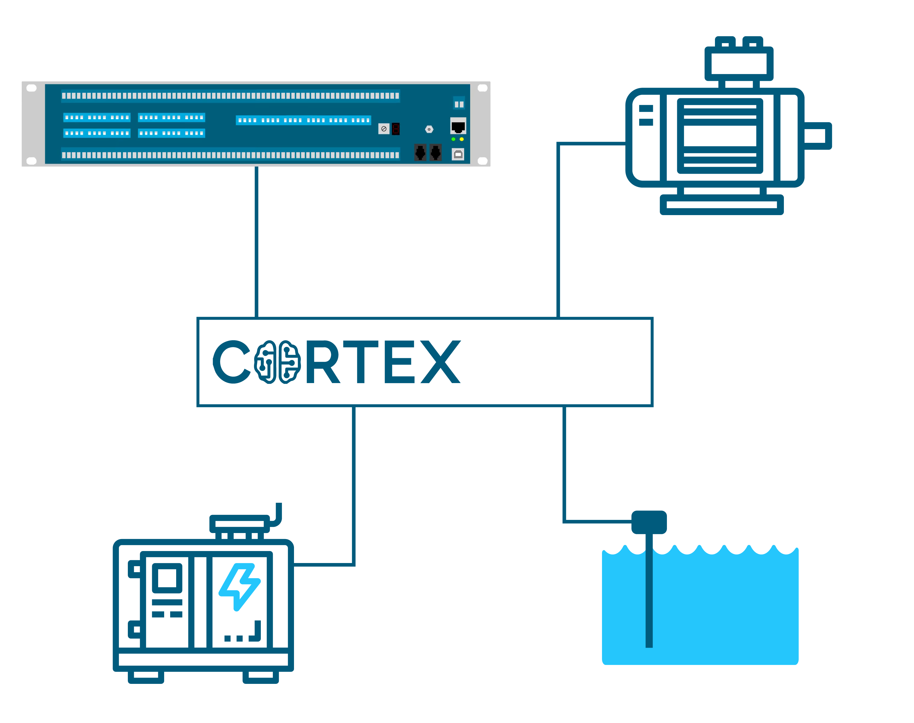Given the fact that Cortex units have a MODBUS interface as well as an SNMP Manager and SNMP Agent, they can be used as translators to allow SNMP Management Systems to read information from MODBUS devices and also to allow MODBUS slave devices to be controlled by SNMP readings from external SNMP Agents.