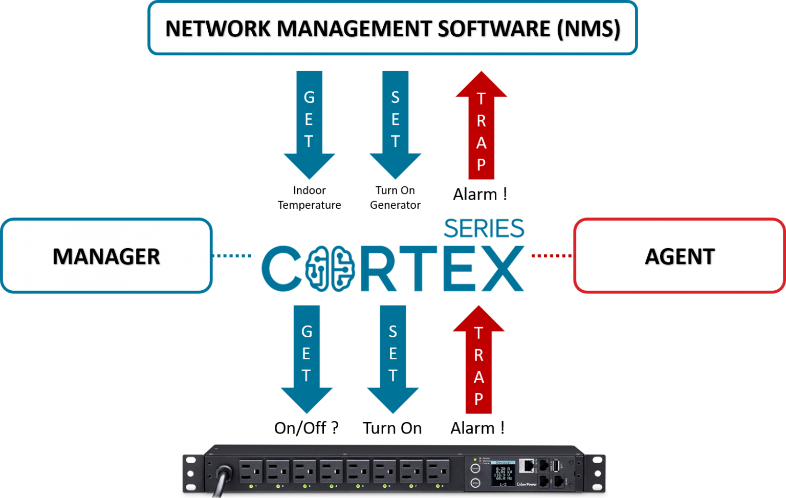 Cortex units have a built-in SNMP Agent to allow monitoring and control from a central SNMP manager. When activated, this agent allows remote SNMP management systems to perform GETs, SETs and to receive traps from Davicom units.